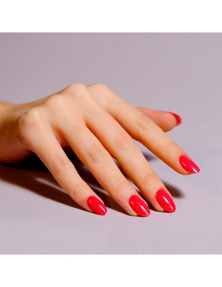 Esmalte semipermanente Rojo fresa con brillo dorado fino
